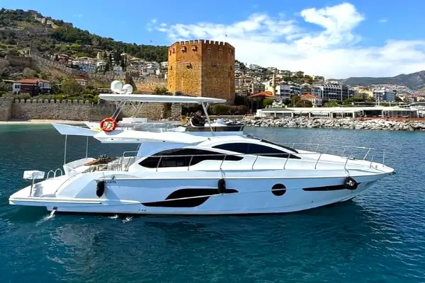Découvrez le vrai luxe à bord Efsane Deluxe, un yacht à moteur de 17,50 mètres construit sur mesure au départ de Centre-ville d'Alanya. Conçu pour les groupes privés à la recherche de confort et de divertissement, ce yacht se distingue par des caractéristiques haut de gamme telles qu'un système d'alarme en option, un système d'alarme en option et un système d'alarme en option. scooter sous-marin (Seabob) et d'un Équipage professionnel de 3 personnes, Il s'agit d'une expérience VIP haut de gamme avec un service porte à porte.