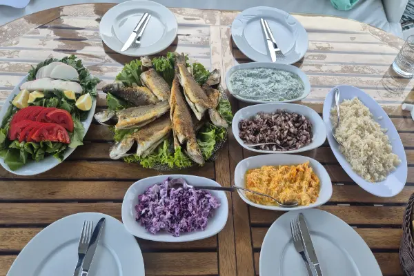 ✓ BBQ Déjeuner / Dîner : Poisson, poulet ou boulettes de viande grillés